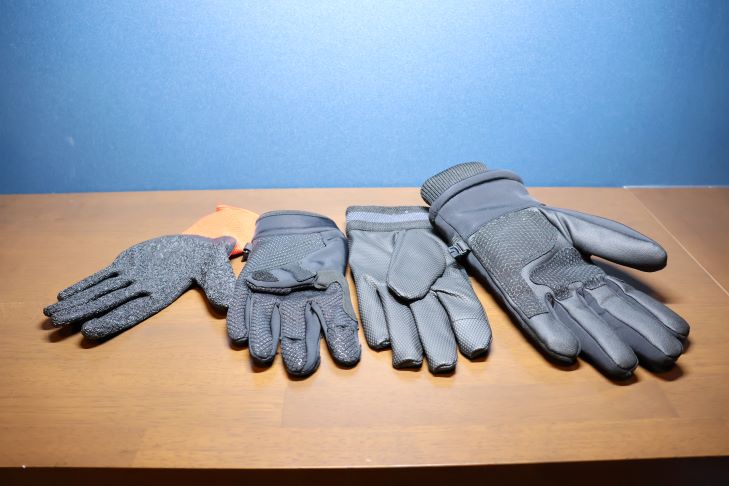 フィッシンググローブまたは防寒手袋の選択肢は主に、「運搬作業用手袋」「スリーフィンガーレスグローブ(フィンガーレス)」「フルフィンガーグローブ」「スノーグローブ」が挙げられます。