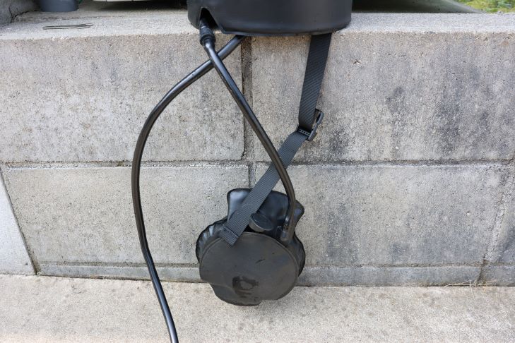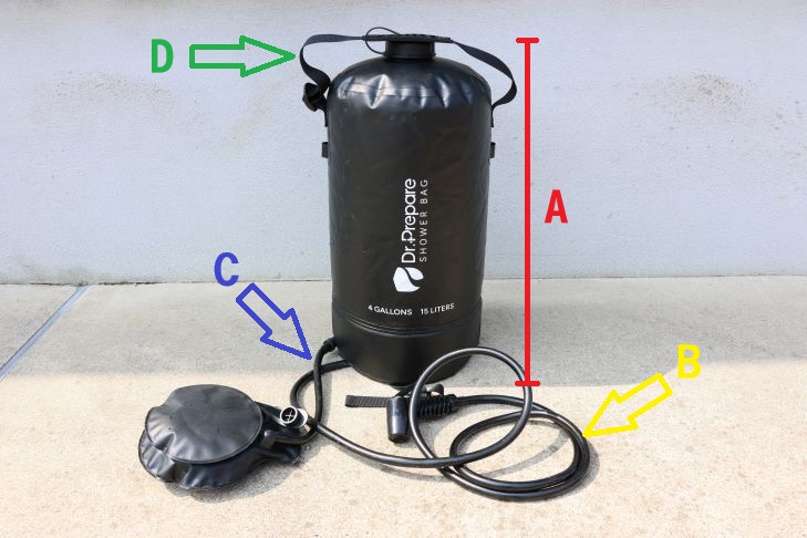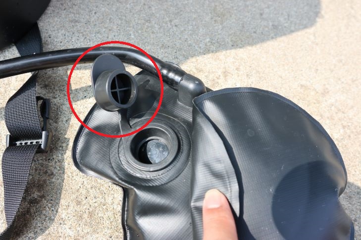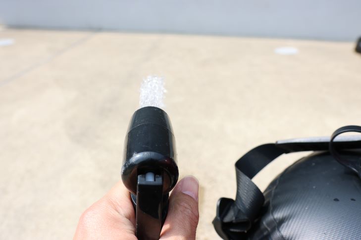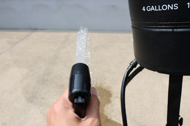 つまりシャワーバッグ内の圧力が低下して追加でフットポンプを踏みたい時は、シャワーバッグを地面に置く必要があります。
