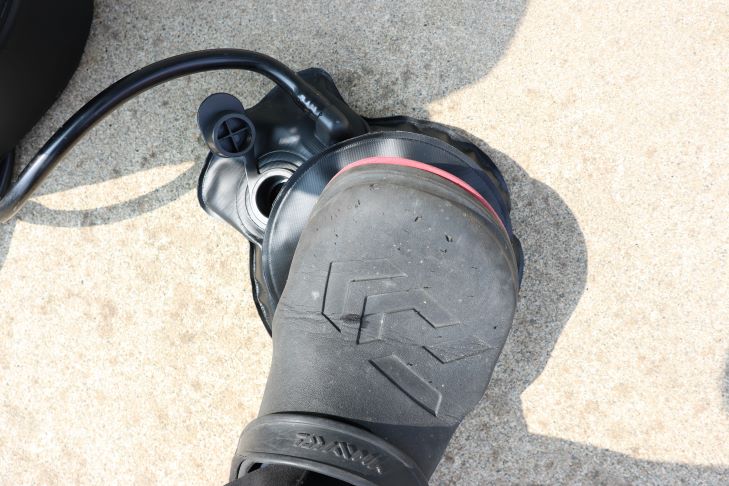 右写真のように裏返っている場合は、正常に戻してからフットポンプを踏むと圧がかかりやすくなります。
