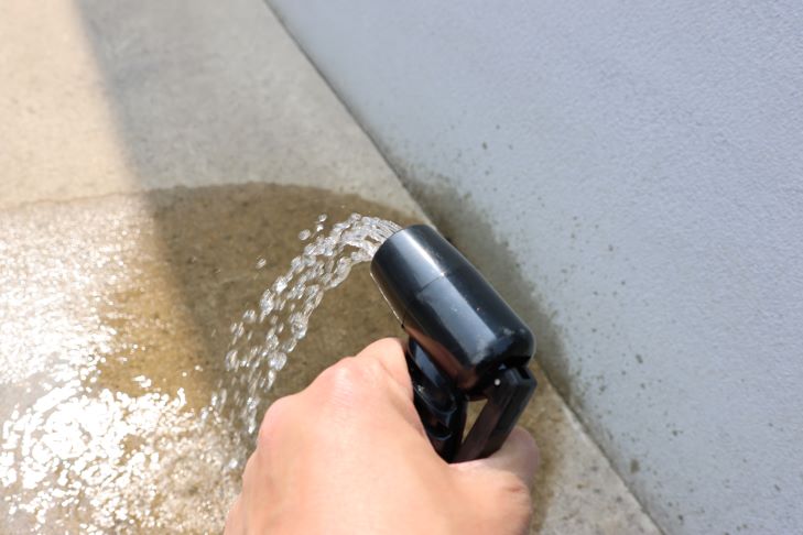 その状態で使用した場合は、飛距離にして約50㎝ほどの散水になります。