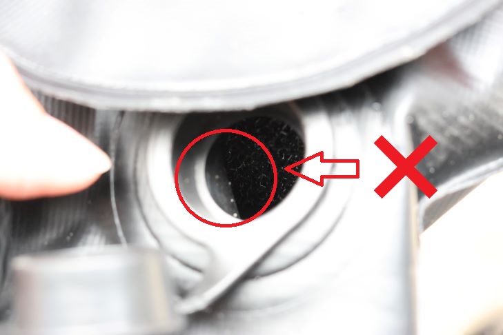 フットポンプのパッドが空気吸入口にフタをするようになっている状態(左写真)が正常で、裏返っている状態(右写真)だとフットポンプが作動しない場合もあります。