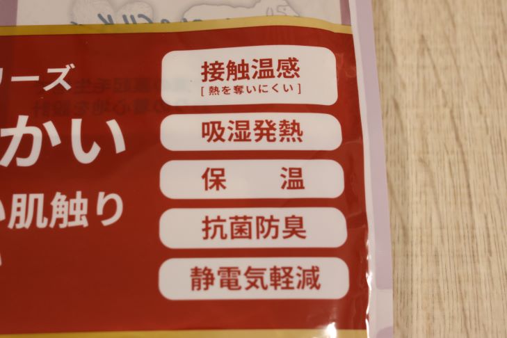 【価格の一覧】でも紹介しましたが、ホッとするシリーズはインナーの他にタイツと靴下もラインナップされています。