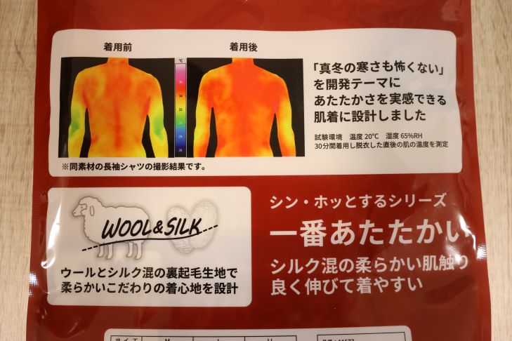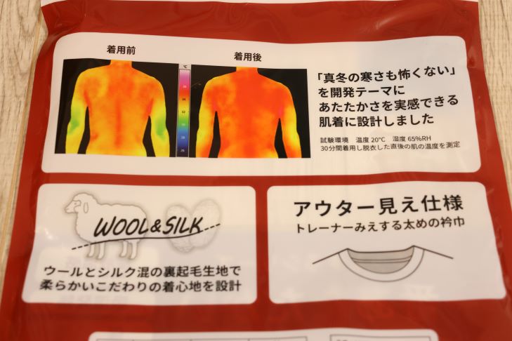 ただ肌とインナーが触れ合う面積が多いほど吸湿発熱が最大限に高まるため、同時に暖かさも期待が持てました。