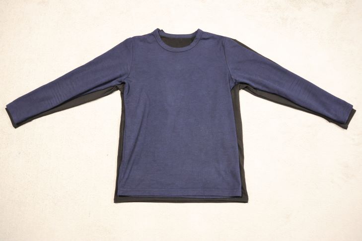 トレーナーのような太めの衿巾になっているため、肌着を感じさせない仕様になっています。