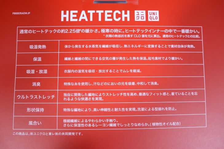 こちらも極ホット クルーネックと全く同じで、