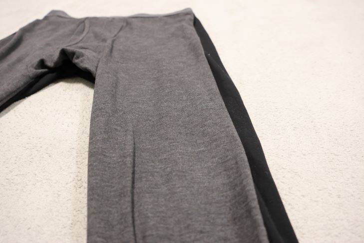 ただ股より下はタイトな作りで、ユニクロの「超極暖ヒートテックタイツ」と比べてやや細いのが写真で分かると思います。
