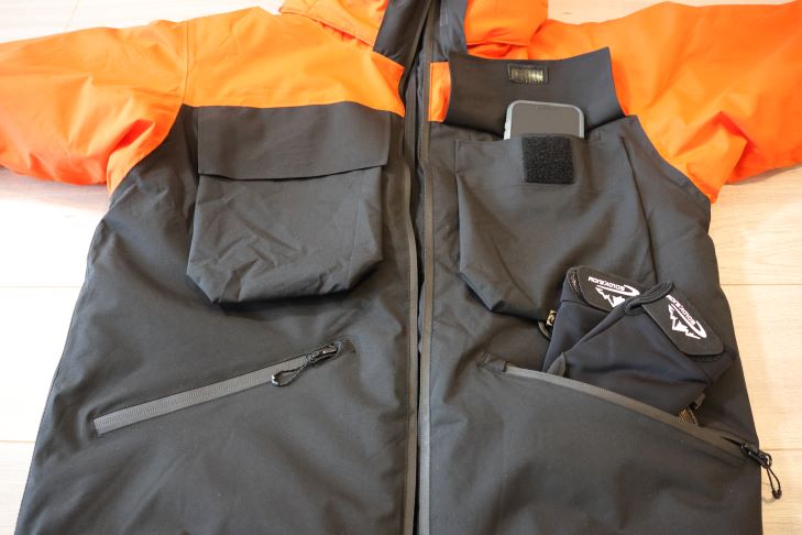 目的が「釣り」で使用する場所が「室外」、更には「キャストで腕が上がる(ウェアの丈が上がる)」として考えられたウェアになるため、上着の裾から冷気が入り込まないパウダーガード機能があるとより保温力に優れると感じました。