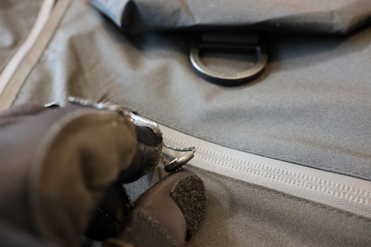 また腹ポケットのファスナーは持ち手に紐が備わっていますが、紐はそれほど大きくないためフィッシンググローブを着用時は開閉に難がありますので、必要に応じて紐のアレンジがおススメです。
