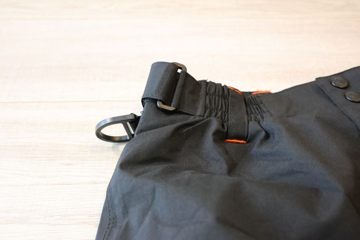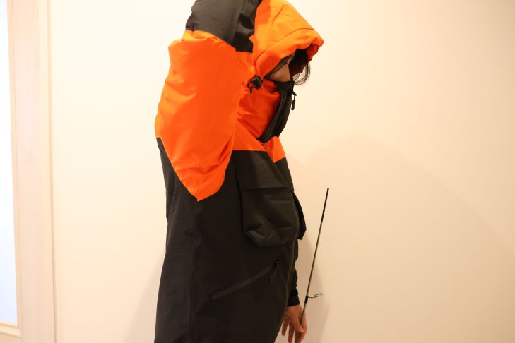 上着の裾口はゴムで絞れるようにはなっていますが、ゴムなので機能がやや不足している感じが否めなく、冷気が出入りしているのを感じました。