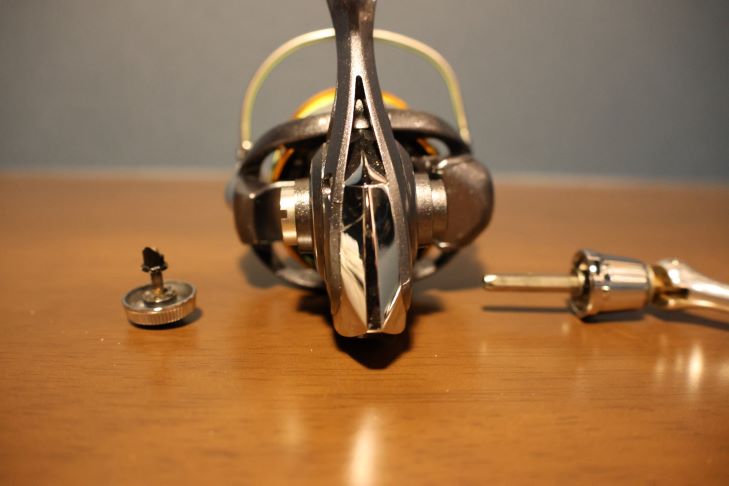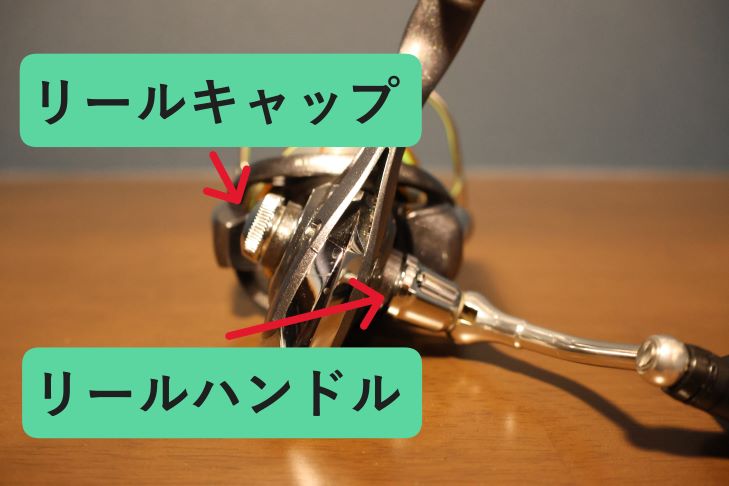 使用するリールの機種により変化はありますが、ハンドルキャップを外さないとリールハンドルが抜き取れない場合と、ハンドルキャップをつけたままリールハンドルが抜き取れる2種類があります。