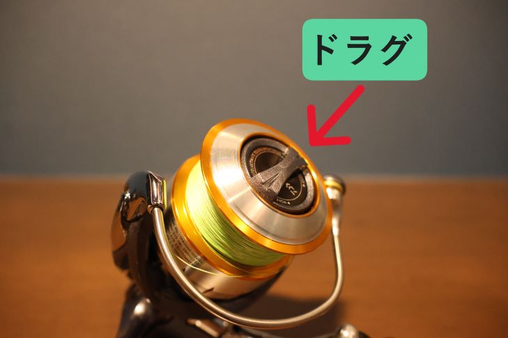 ベールを下した状態でドラグを緩めるとラインは弱い力でも引っ張れますが、徐々にドラグを閉めると引っ張る力も強くなります。