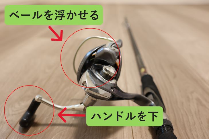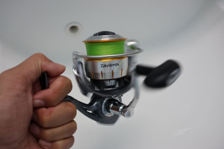 リール内部に水が浸入しないように、基本的には逆さまにして洗わないようにしましょう。