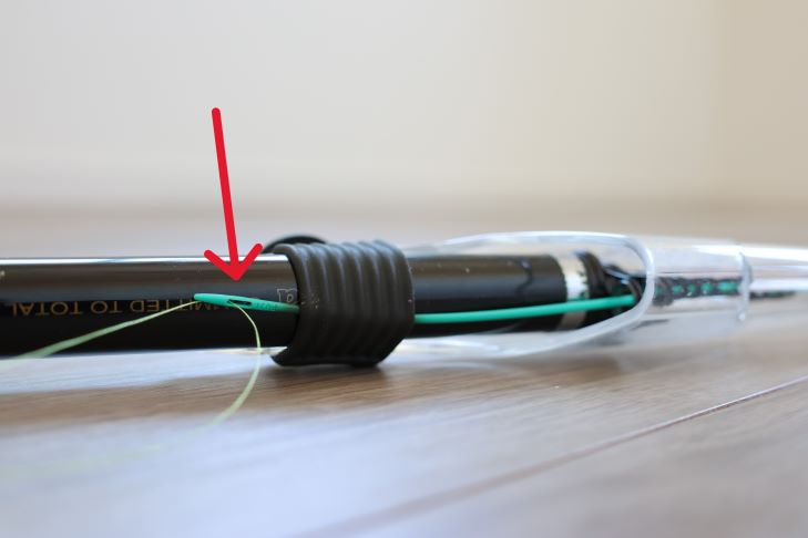 2ピースロッドの接続部分に隙間があり、どれだけ頑張ってもピッタリ入れる事はできません。
