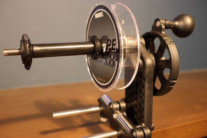 そのようなアイテムがなくても1人でライン交換は可能で、鉛筆や割り箸でスプールを刺して固定、後は足の指で挟んでテンションをかけながらライン交換の方法もあります。