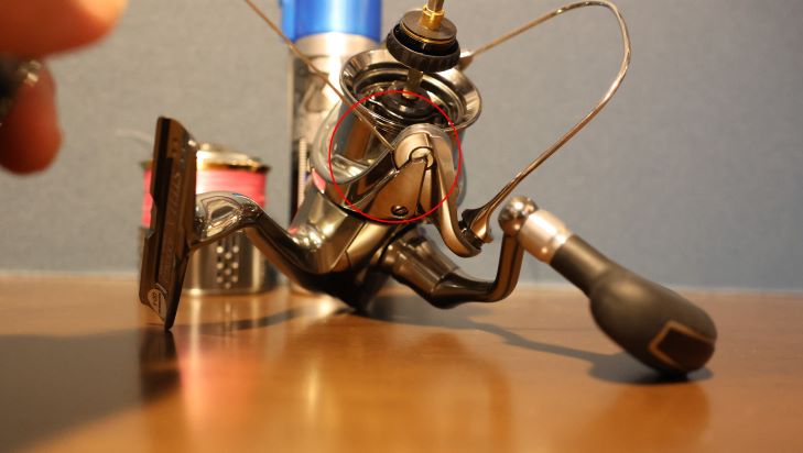ほとんどのリールに言えますが、上記のような隙間にグリスやオイルを注油します。