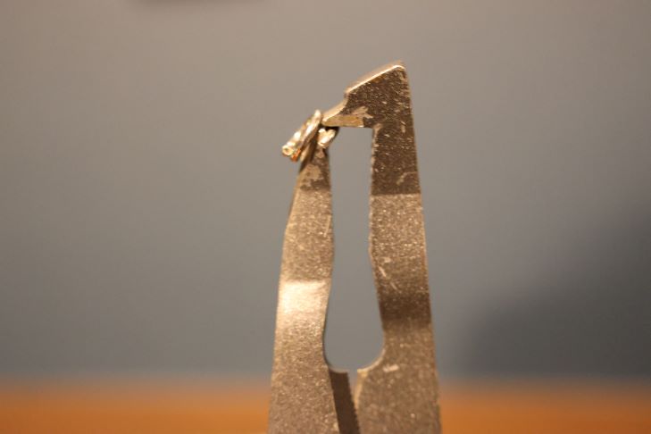 スプリットリングプライヤーは上記の工具になり、スプリットリングを押し広げてルアーのアイに入れます。