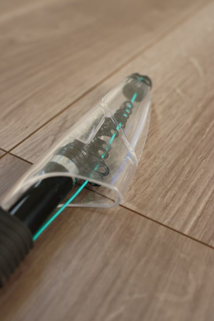 写真では逆になっていますが、向きとしては短い方がショックリーダー、長い方がルアーになります。