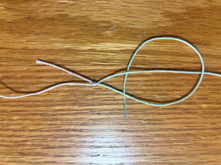 「STEP1」の輪を2つ作ったのがダブル・クリンチノット、輪が1つだけだとクリンチノットと言います。